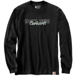 The Carhartt Men’s Relaxed Fit Heavyweight Long Sleeve Script Graphic T-Shirt features side-seam construction that minimizes twisting. The rib-knit crewneck with tagless label provide all day comfort even when wore under layers. Made from 6.75-ounce cotton jersey knit for a soft, comfortable feel.