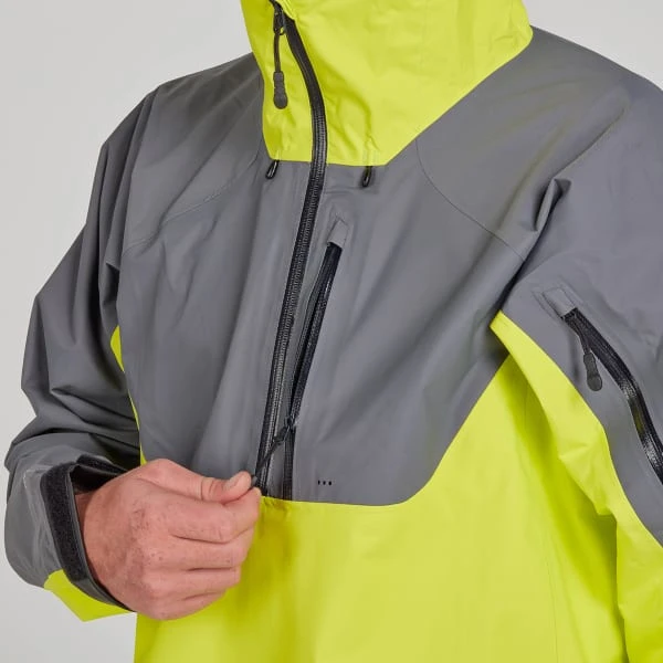 - Hook-and-loop sleeve cuffs help block spray and paddle drip.