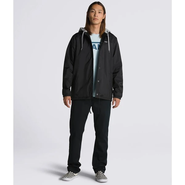 The Riley Coaches Jacket is a 100% nylon water-resistant buttondown coaches jacket with a fully-lined fleece body and hood, logo embroidery at the left chest, and slit pockets at the hips.